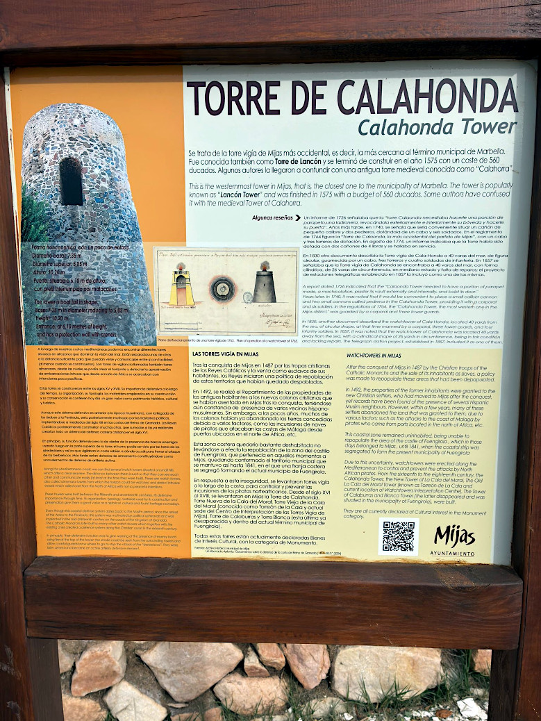 Von La Cala aus führt eine Wanderung auf dem wunderschönen Küstenpfad Senda Litoral de Mijas in westliche Richtung zu einem weiteren gut erhaltenen Turm. Es ist der aus dem 16. Jahrhundert stammende Torre de Calahonda. Er befindet sich auf halben Weg zwischen La Cala und Cabopino auf einem Privatgrundstück und ist daher nicht direkt zugänglich. Da der Wachturm aber nur ein paar Meter vom Küstenpfad entfernt ist, hat man von dort auch den besten Blick. Eine Hinweistafel informiert ausführlich über die Geschichte und die Abmessungen des Turms.